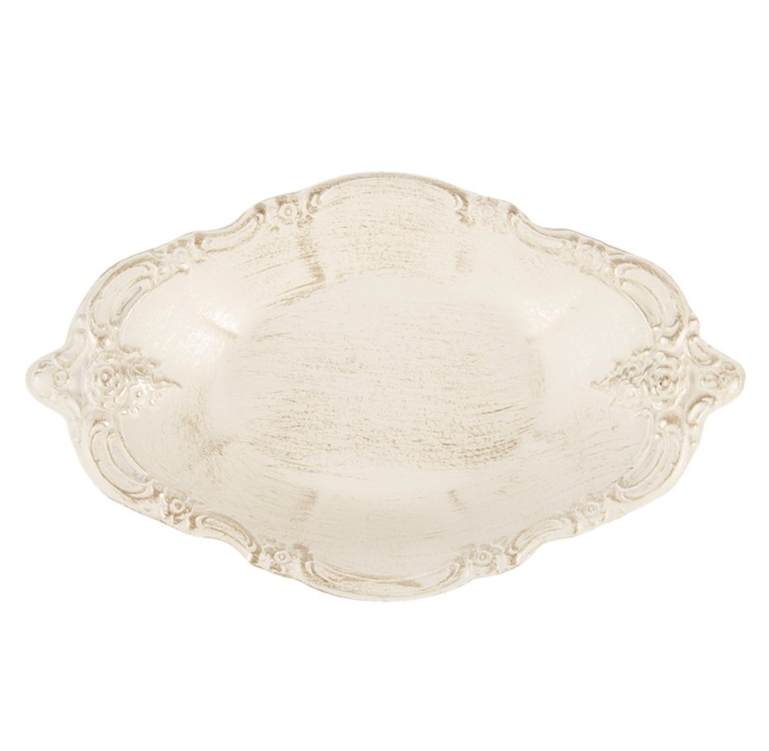 Elegant smykkeskål med dekorativ kant i klassisk antik stil. Skålen er perfekt til opbevaring af smykker, nøgler eller småting og fungerer samtidig som en smuk dekoration på kommoden, badeværelset eller natbordet. Den detaljerede kant giver et romantisk og tidløst udtryk, der passer ind i både moderne og vintage inspirerede hjem.