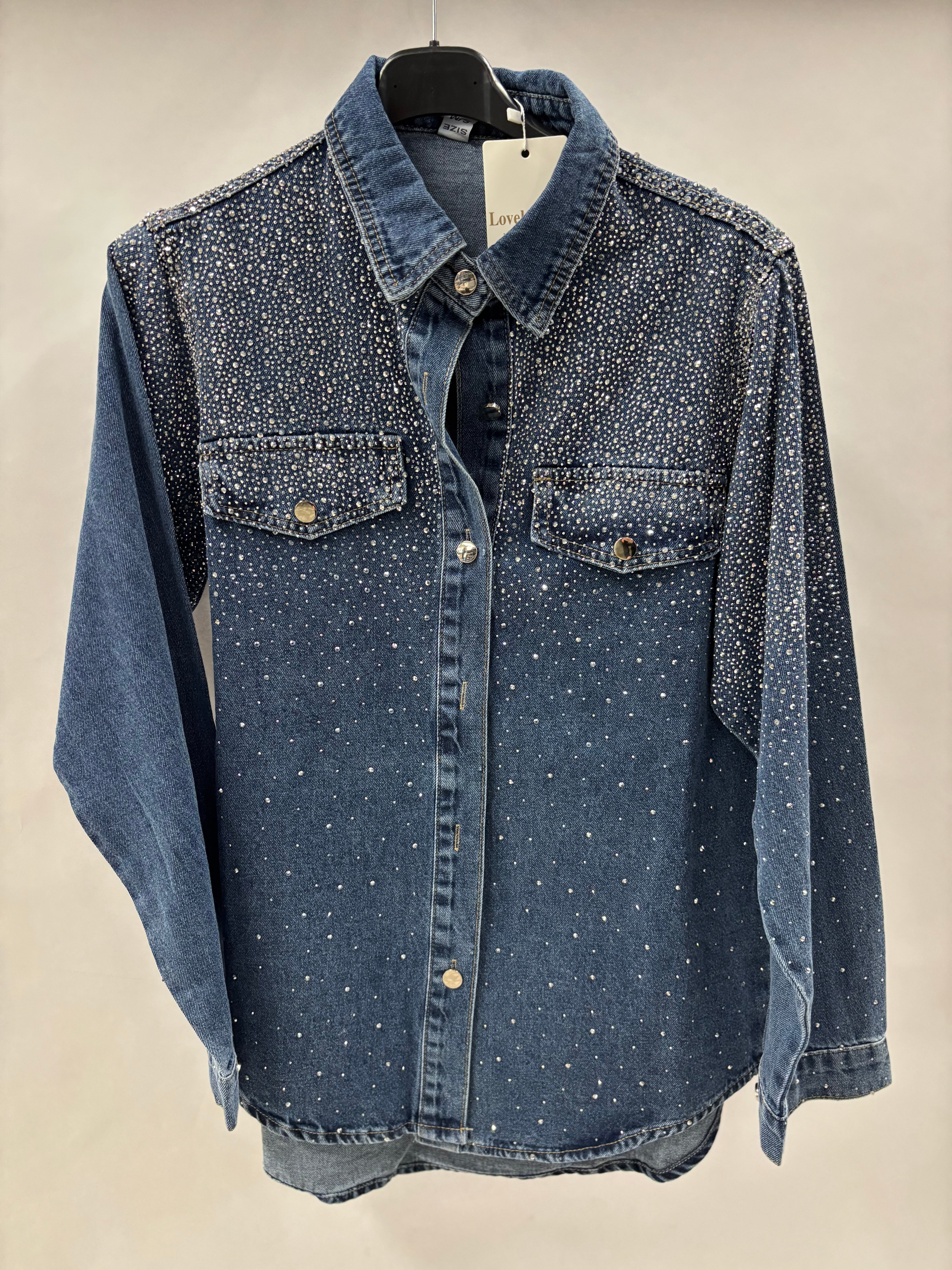 Denim/cowboyjakke med skjortelook og bling Tilføj et cool og iøjnefaldende touch til din garderobe med denne denim/cowboyjakke med skjortelook og bling. Den lette, skjorteagtige pasform giver et afslappet udtryk, mens de glitrende bling-detaljer tilfører et moderne og glamorøst twist. Jakken er perfekt som lag-på-lag og kan styles både åbent og lukket. Brug den til jeans for et råt denim-on-denim look eller over kjoler og toppe for at tilføje ekstra attitude. Fordele Skjorteagtig denimjakke for let og casual pasform Bling-detaljer for et glamorøst udtryk Perfekt til både hverdag og festligt brug Let at style til mange forskellige outfits
