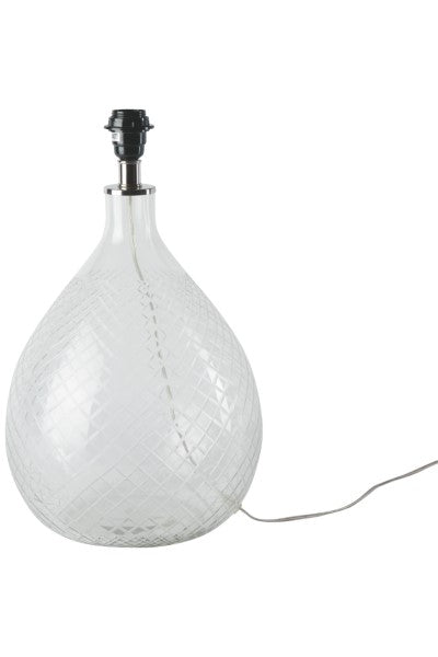 Denne glaslampe i klar glas med håndgravering er et dekorativt og funktionelt designelement, der kombinerer tidløs elegance med kunstnerisk håndværk.
