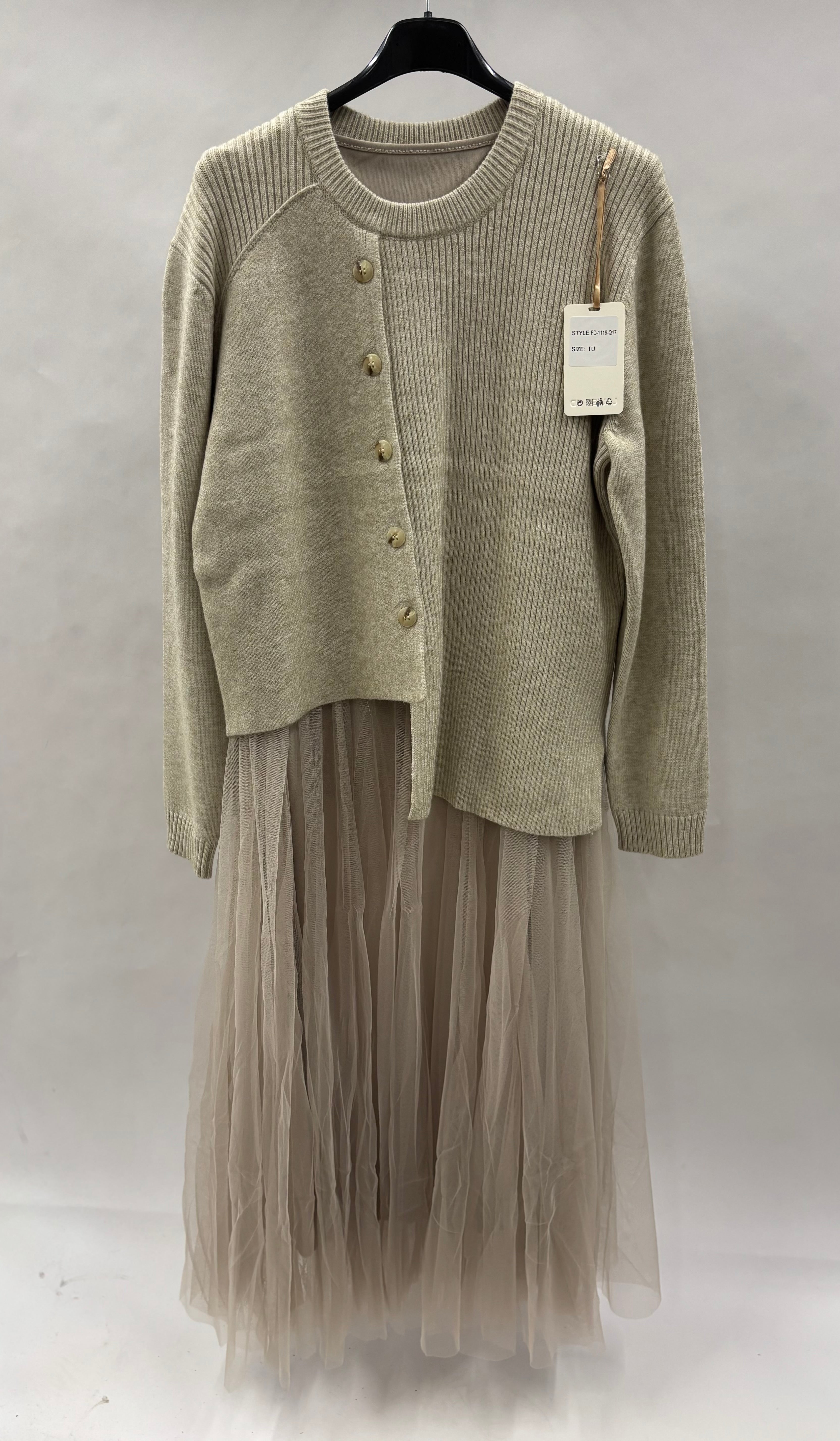Kjole med tylunderdel og separat cardigan