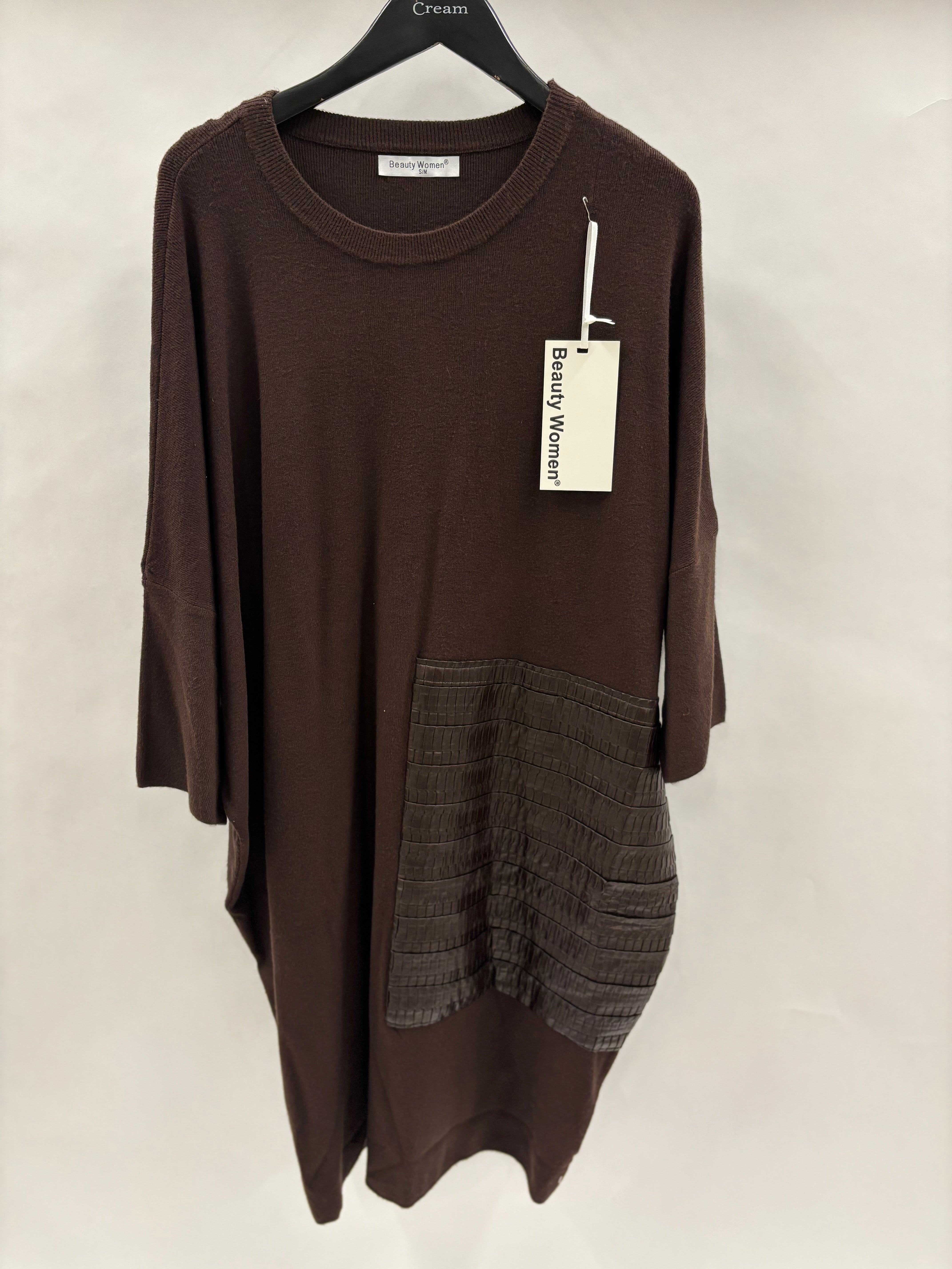 Denne kjole med læderlook-detalje på lommen er et must-have til dig, der ønsker komfort, stil og et unikt design.