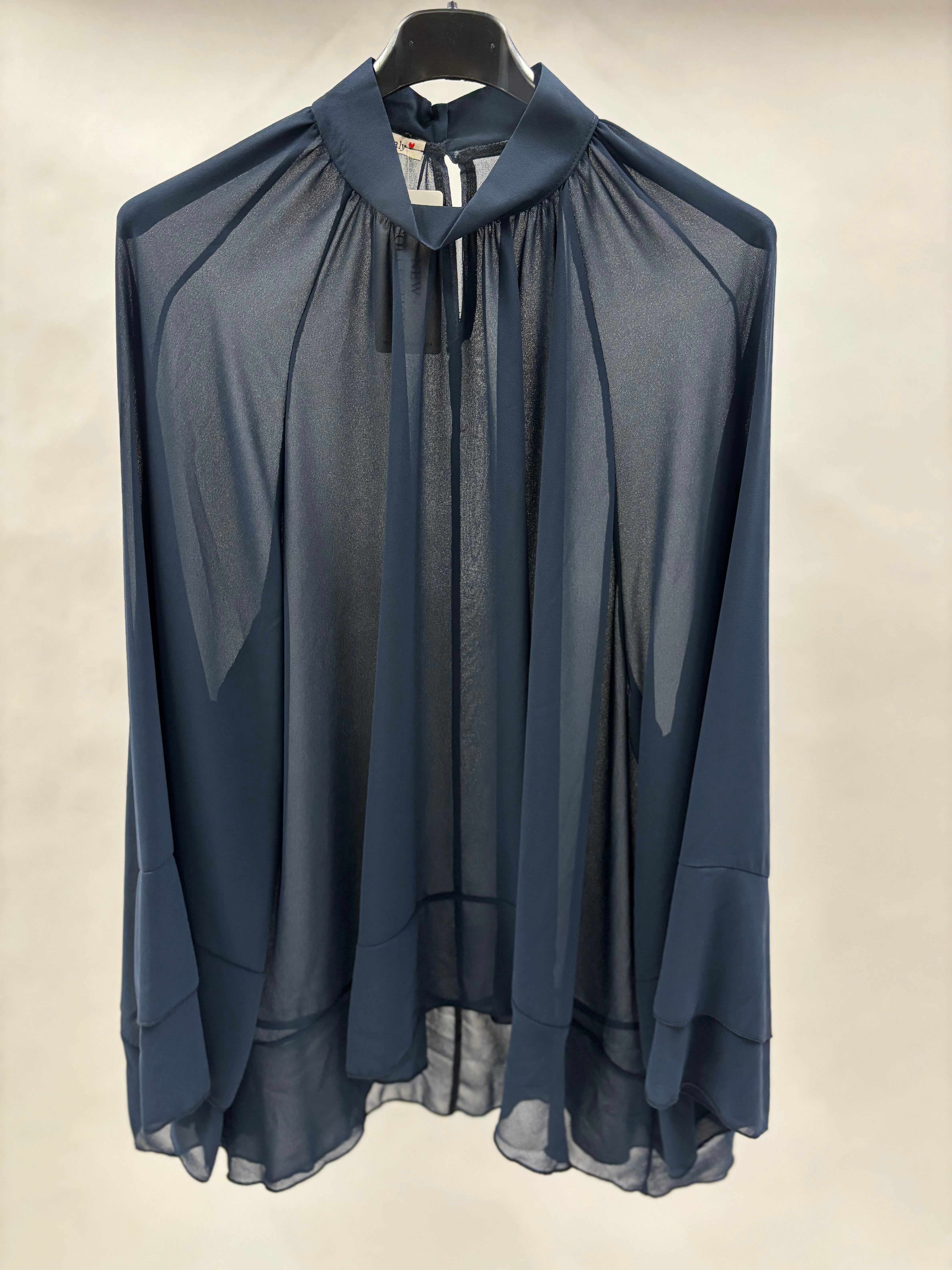 Bluse i Chiffon med Høj Hals og Lange Ærmer