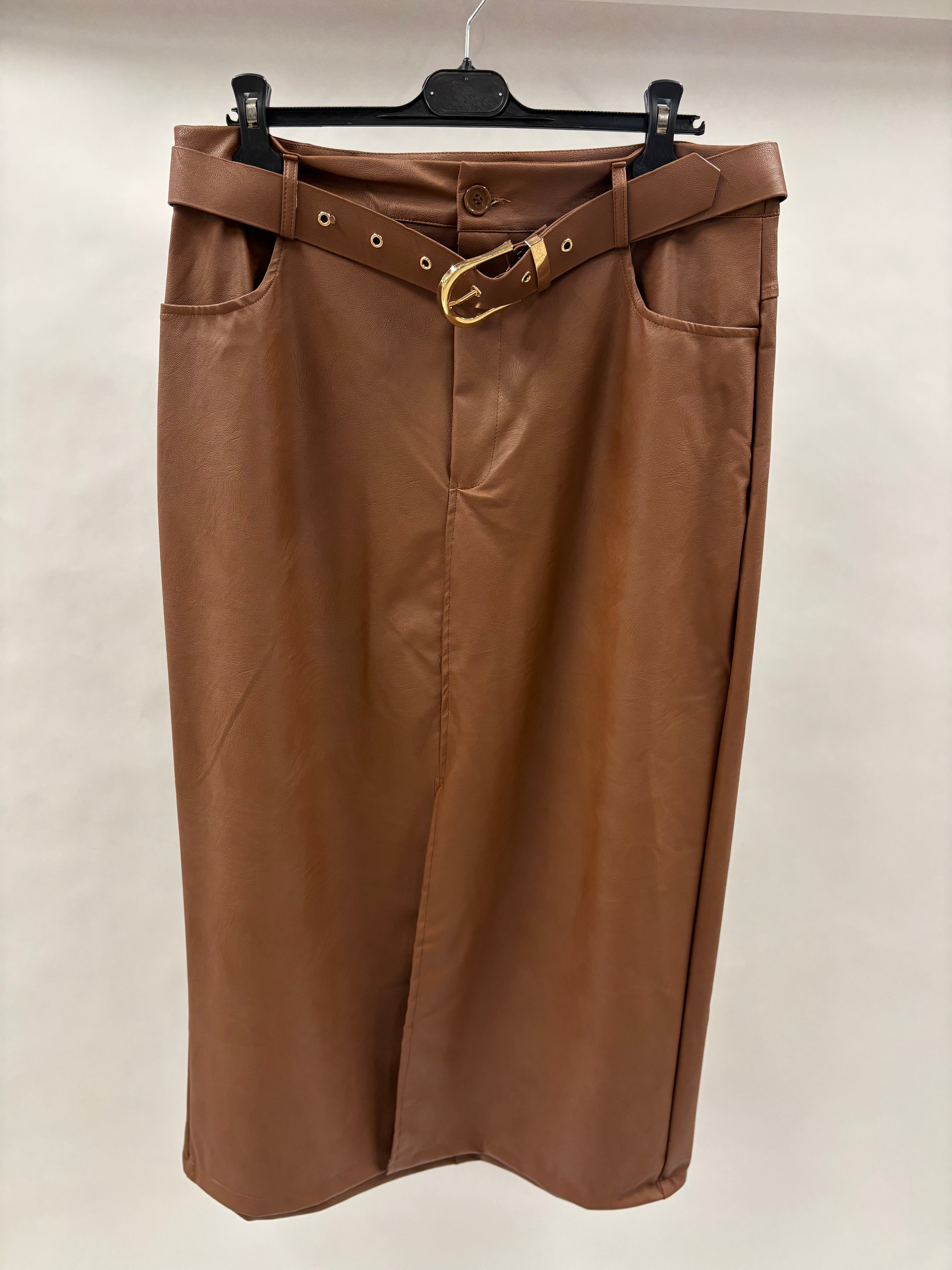 Læderlook Nederdel med Bælte – Passer fra Str. 46-52