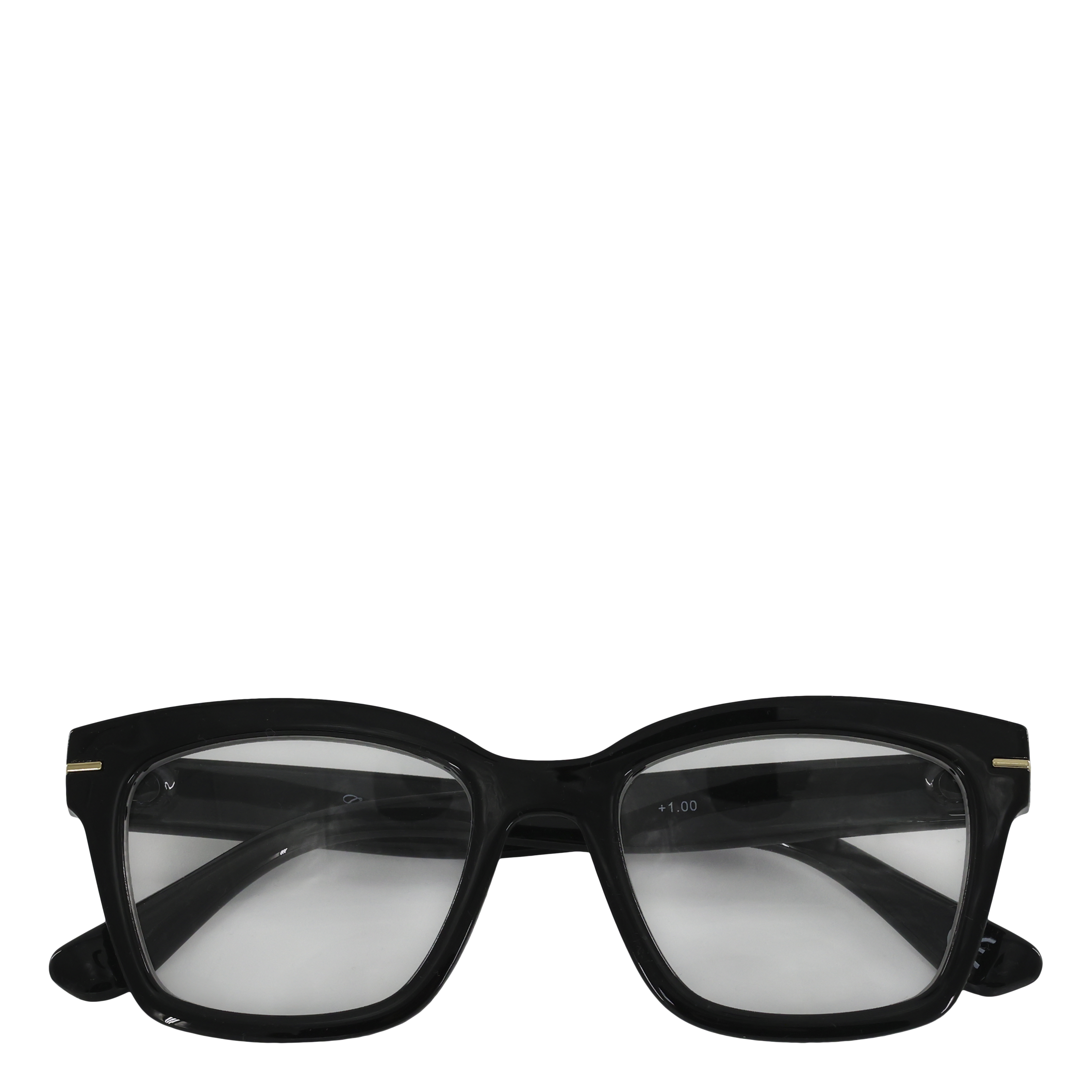 Klassiske læsebriller i elegant sort design med fine gulddetaljer, der giver et sofistikeret og moderne udtryk. Den lette ramme sikrer en behagelig pasform, mens de klare linser gør læsningen skarp og ubesværet.
