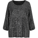 De glitrende pailletter giver et eksklusivt udtryk, mens de lange ærmer med elastikafslutning sikrer en flot silhuet og en god bevægelsesfrihed. Blusen er nem at style med både bukser og nederdel, og den kan hurtigt løfte ethvert outfit til noget helt særligt.
