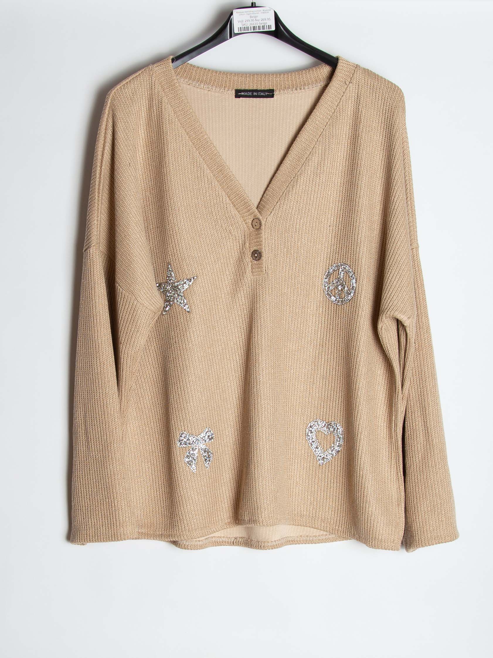 Ribbluse med bling motiver - Brystmål 120cm - Ingen returret - ITNOV24