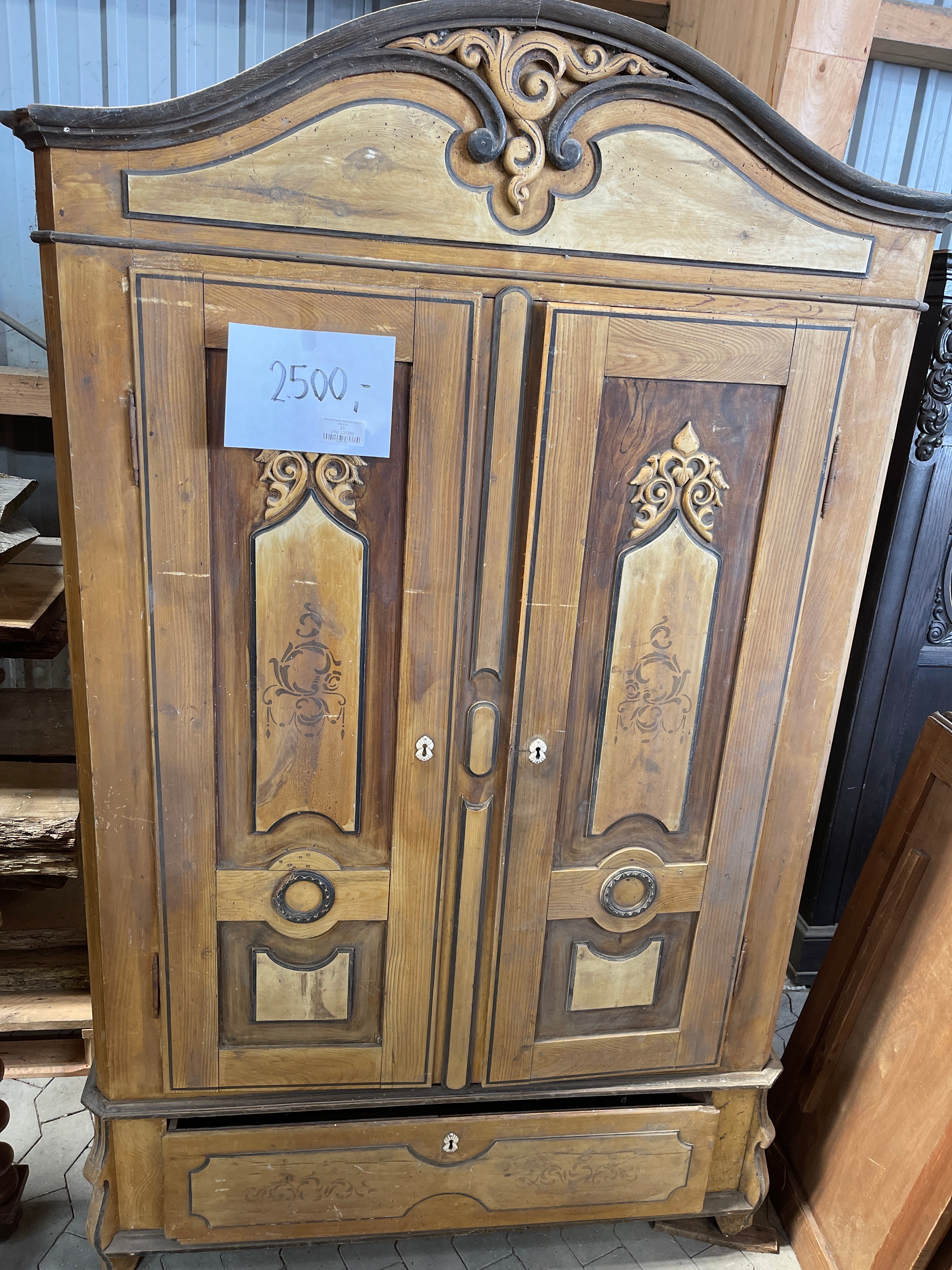 Skab med udskæringer og skuffe