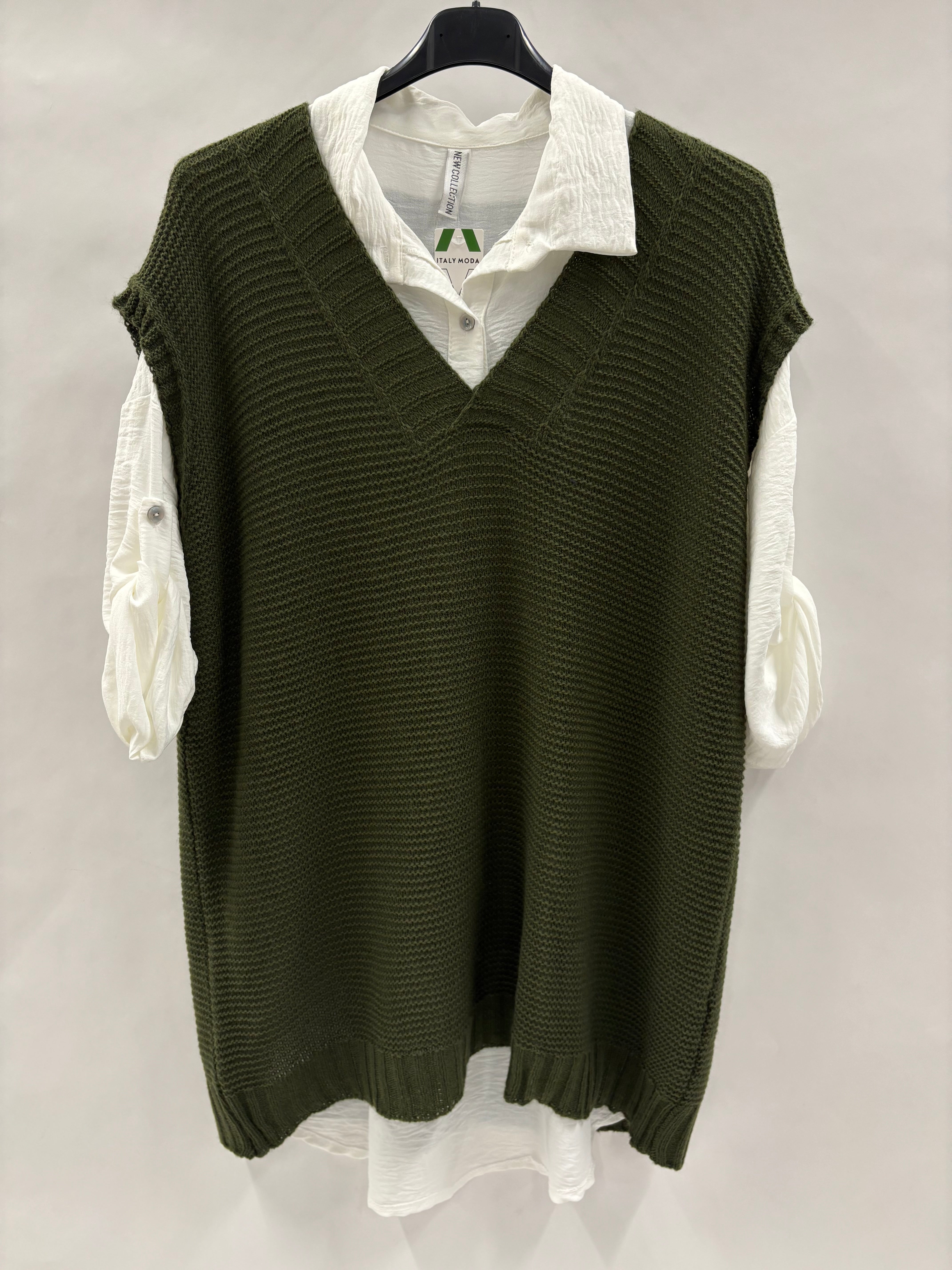 Komplet sæt: Indeholder både skjorte og strikvest for et harmonisk look.
