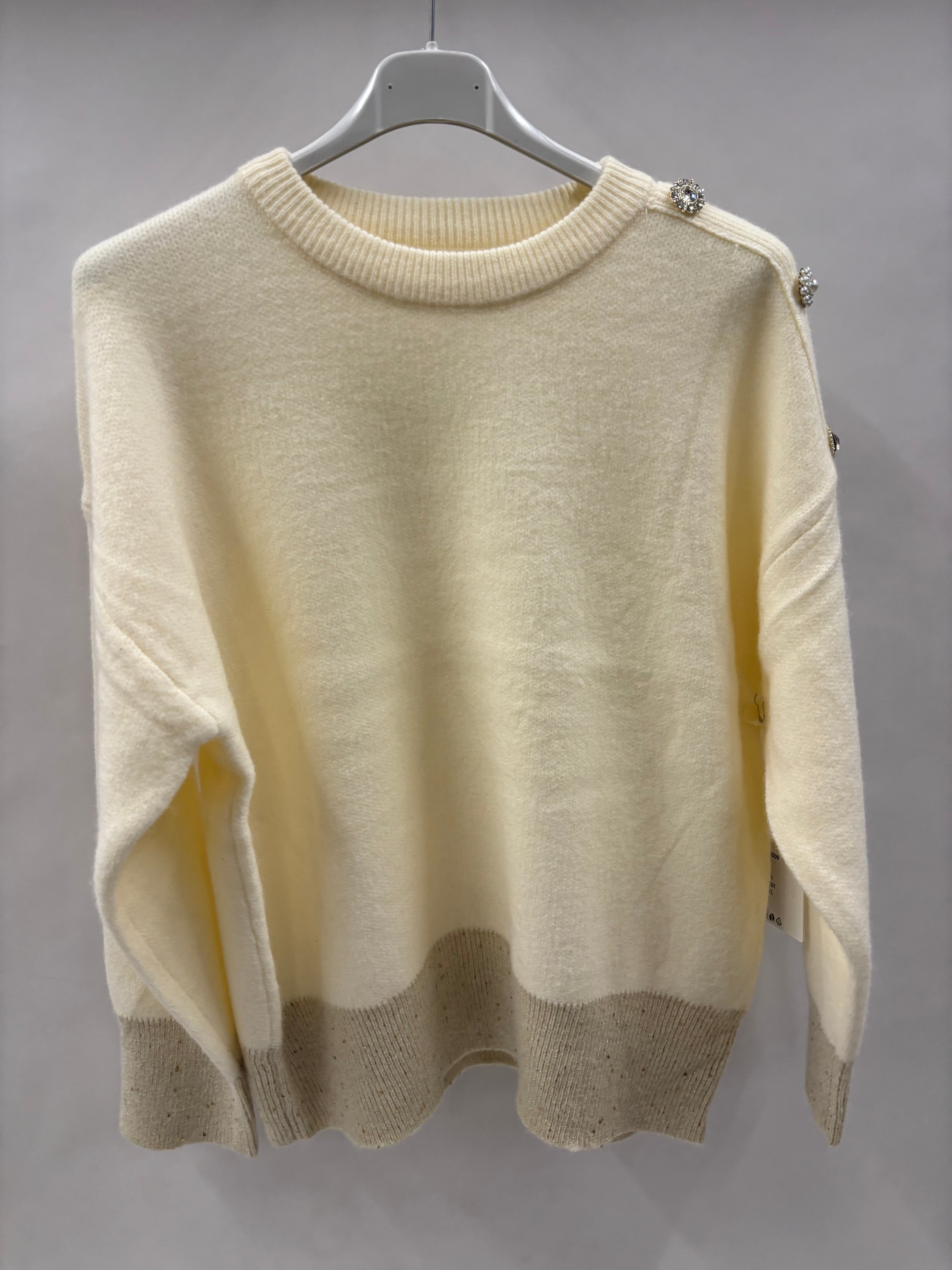 Tilføj et elegant og feminint touch til din garderobe med denne langærmede striktrøje med perleknapper ved ærmerne. Det bløde og behagelige strikmateriale sikrer komfort hele dagen, mens de dekorative perleknapper giver et sofistikeret og stilfuldt udtryk.
