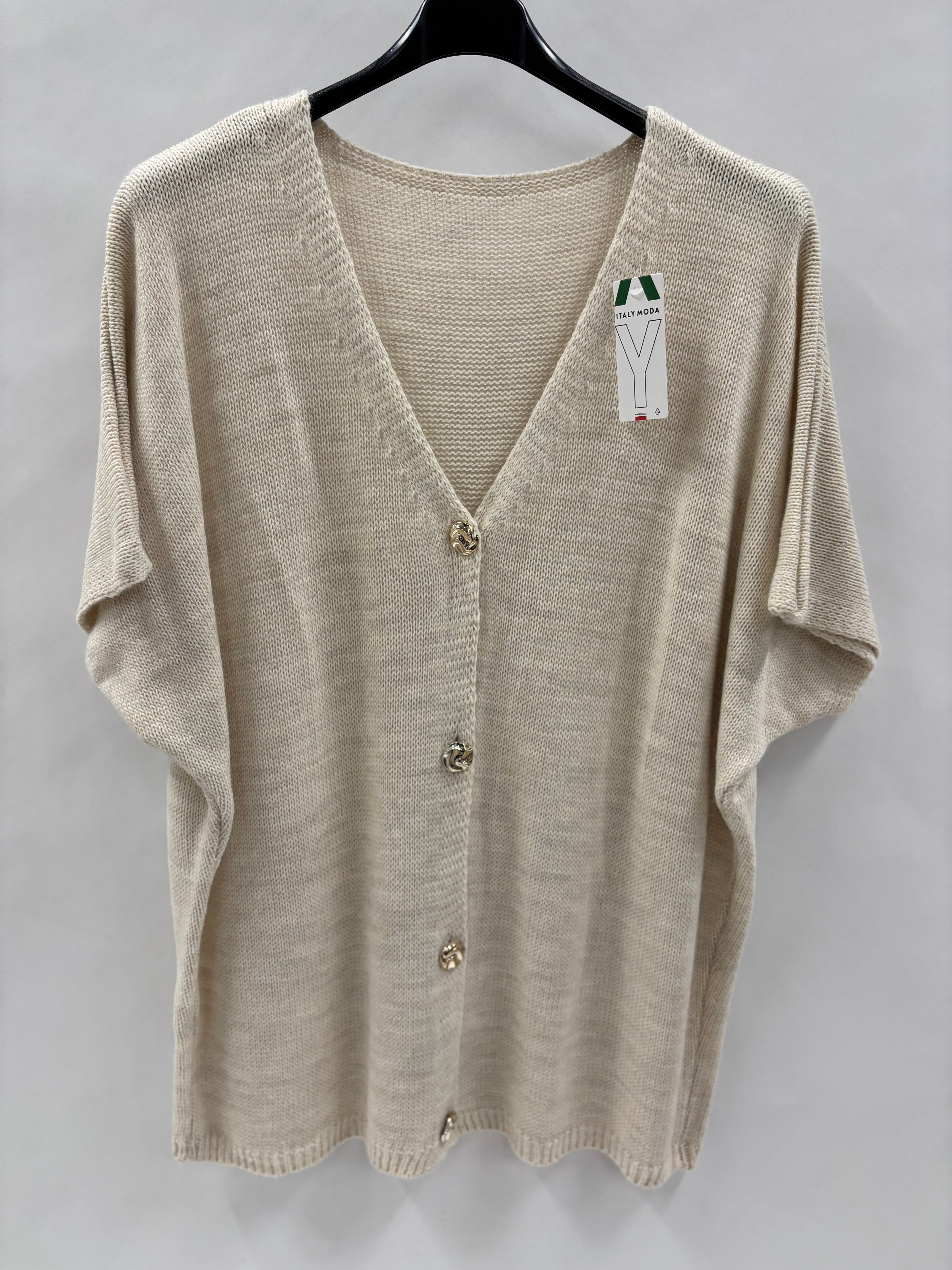 Tilføj et sofistikeret touch til din garderobe med vores strikvest med guldknapper. Denne bløde og komfortable vest er perfekt til layering over skjorter, bluser eller kjoler, og de smukke guldknapper giver et feminint og eksklusivt look.
