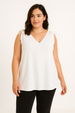 Denne luftige og feminine top er fremstillet i 100% viskose, hvilket giver et let og behageligt fald. De fine bindebånd på skuldrene tilføjer et afslappet og justerbart touch. Pasformen er rummelig og fleksibel – én størrelse, der passer til størrelse 38-48. Med et brystmål på op til 130 cm sikrer den komfort og bevægelsesfrihed. Fås i flere flotte farver, så du nemt kan finde din favorit.