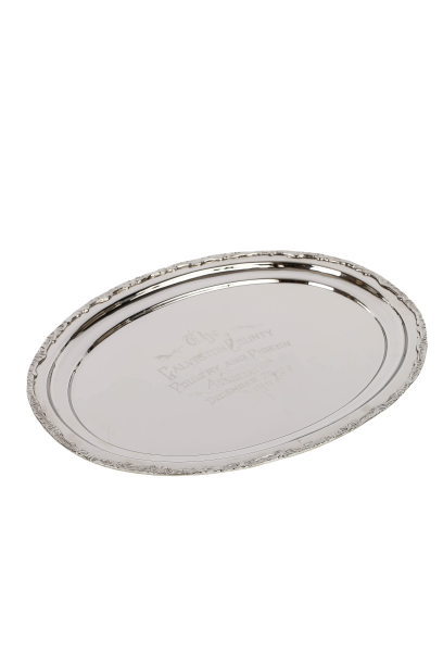 Elegant oval bakke med dekorativ kant, perfekt til servering og pynt i hjemmet. Denne smukke bakke kombinerer funktionalitet med tidløs stil og kan bruges til alt fra servering af drikkevarer til præsentation af lys, vaser eller dekorationer.